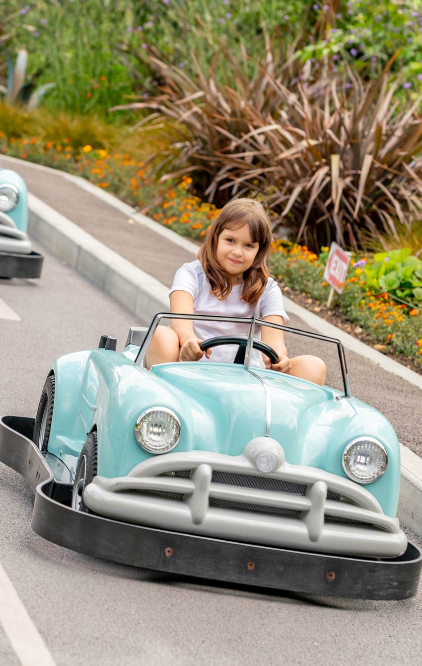 The Queue Assist entrance is adjacent to the exit gate & viewing area. Please await the Operator’s instructions. Queue Assist access is adjacent to the entrance building. There are no steps to reach the cars but guests will have to step over to get into the car. It may be possible to take a wheelchair to the car, but it must be stored clear of the ride in accordance with the Operator’s instructions. An assessment by our First Aid Nurse will be required for drivers using Queue Assist. This assessment will lead to a judgement being made by the Nurse on duty, following a conversation with the parent/carer when they collect their QAP, and they will be given a green/red wristband to indicate whether the child in their care can or can’t drive.