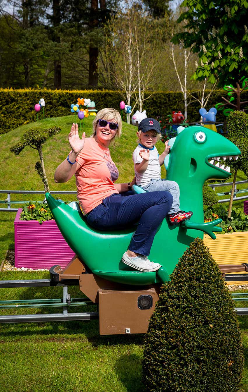 All passengers must be at least 0.85m tall to ride. Children under 1.1m must ride in the front seat accompanied by a responsible adult. Children over 1.1m must ride alone on the rear seat. During peak times adult riders must be accompanying a child on the same dinosaur and cannot ride alone. Please refer to ride signage on the day of visit.