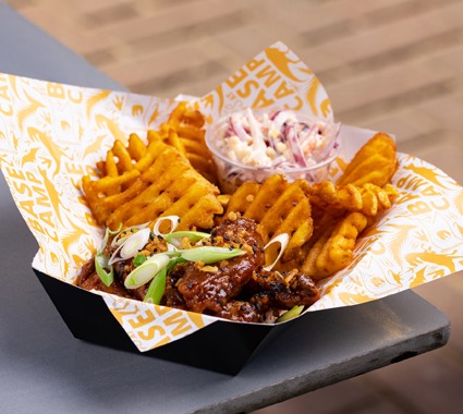 Tasty chicken wings with a choice of sauce await you at Base Camp in Lost Kingdom, plus waffle fries and children’s mac n cheese bites along with a selection of hot and cold drinks.