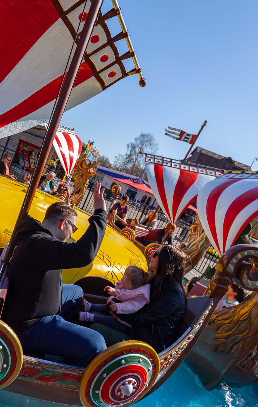 In a time before Valgard, Viking dragons were spotted elsewhere in Paultons Park! Step aboard the beautiful Dragon Boats with their distinctive figurehead and beautiful bright coloured sails for a gentle Nordic sail in a circle. Aimed at young children and, of course, grown-ups!