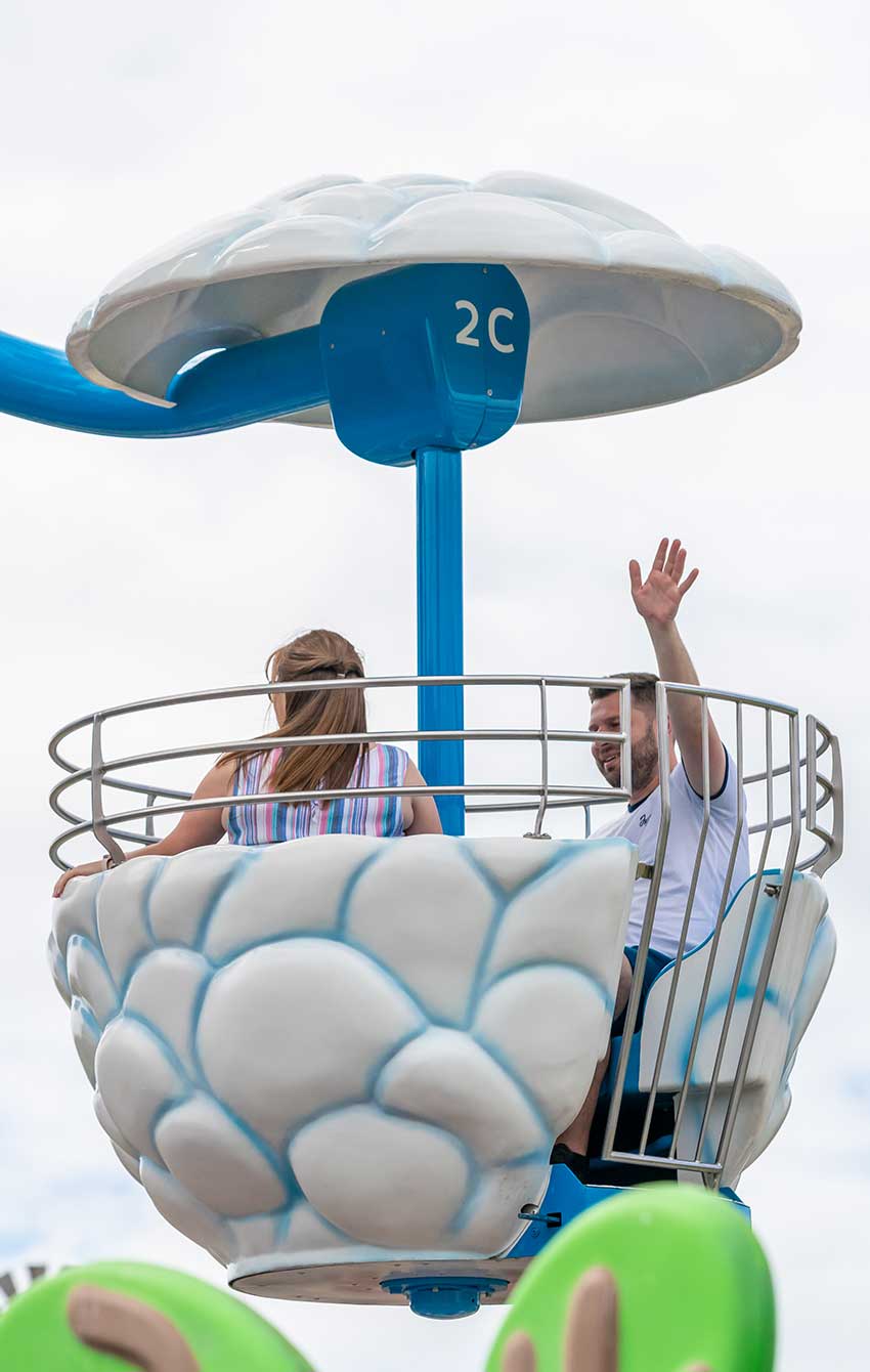 Peppa and George love visiting Windy Castle! Ride in a spinning cloud to the top of Windy Castle Ride to reveal wonderful views across Peppa Pig World in this gentle family adventure.