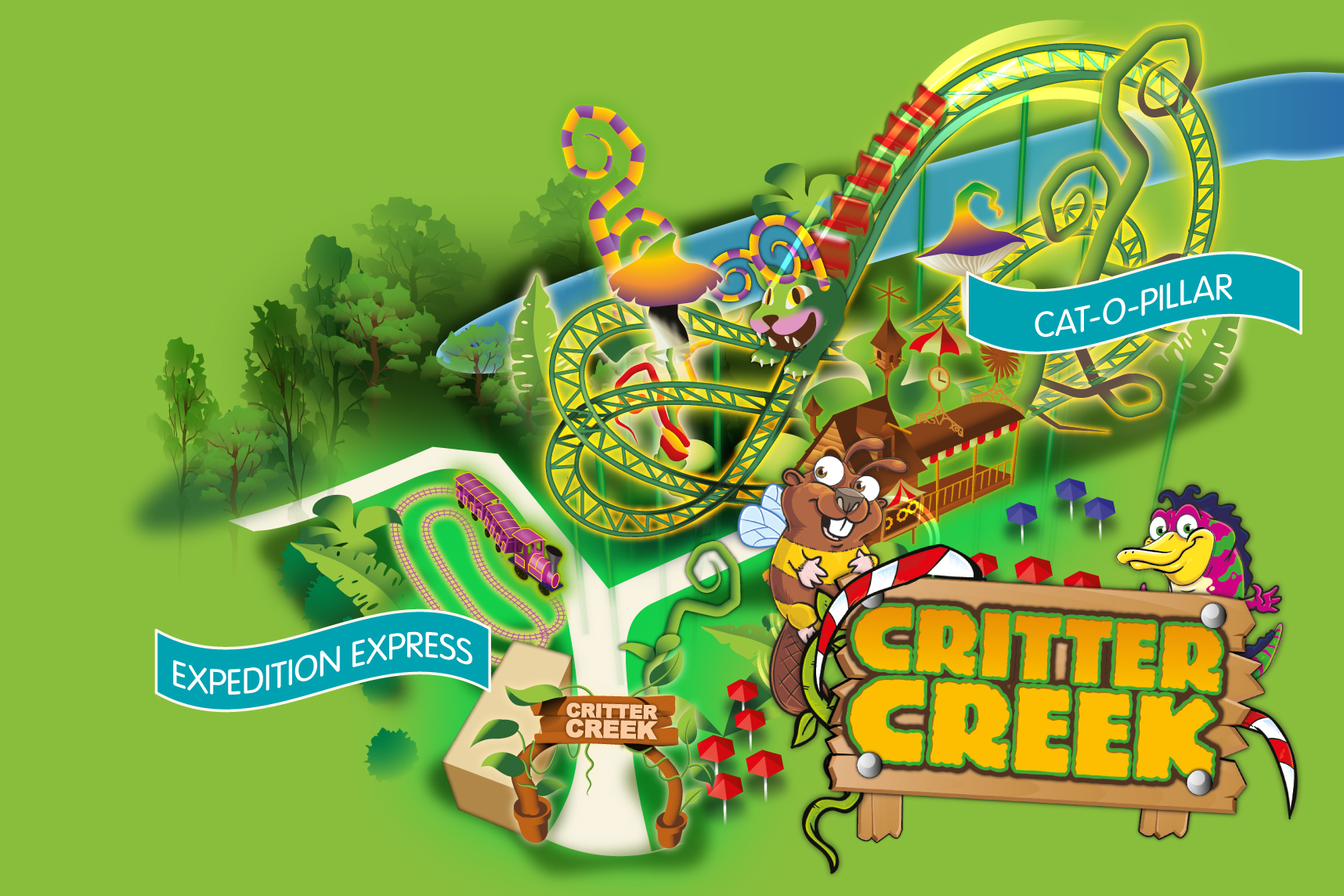 Discover our exciting mini-land, CRITTER CREEK. Critter Creek is a fully themed world of strange mixed-up creatures known as the ‘Curious Critters’! There are rollercoasters for kids, family rides and much more to discover.