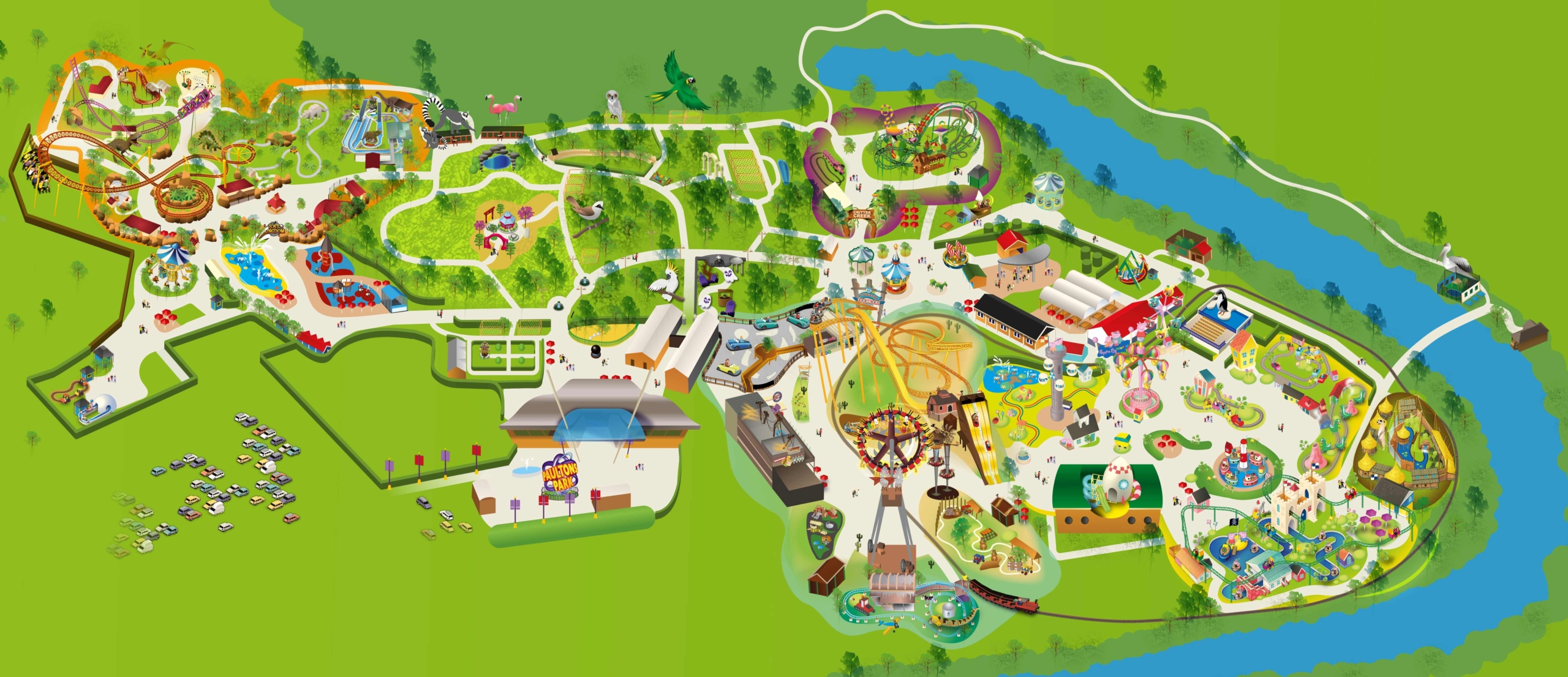 Paultons Park offers a large, free car and coach park. Coaches and mini-buses should follow directions to our coach park, which is then a short paved walk to the park entrance. If your school is arranging for parents to drop off at the park, please let the Education team know as we may need to make special adjustments to ensure a smooth entrance for everyone.